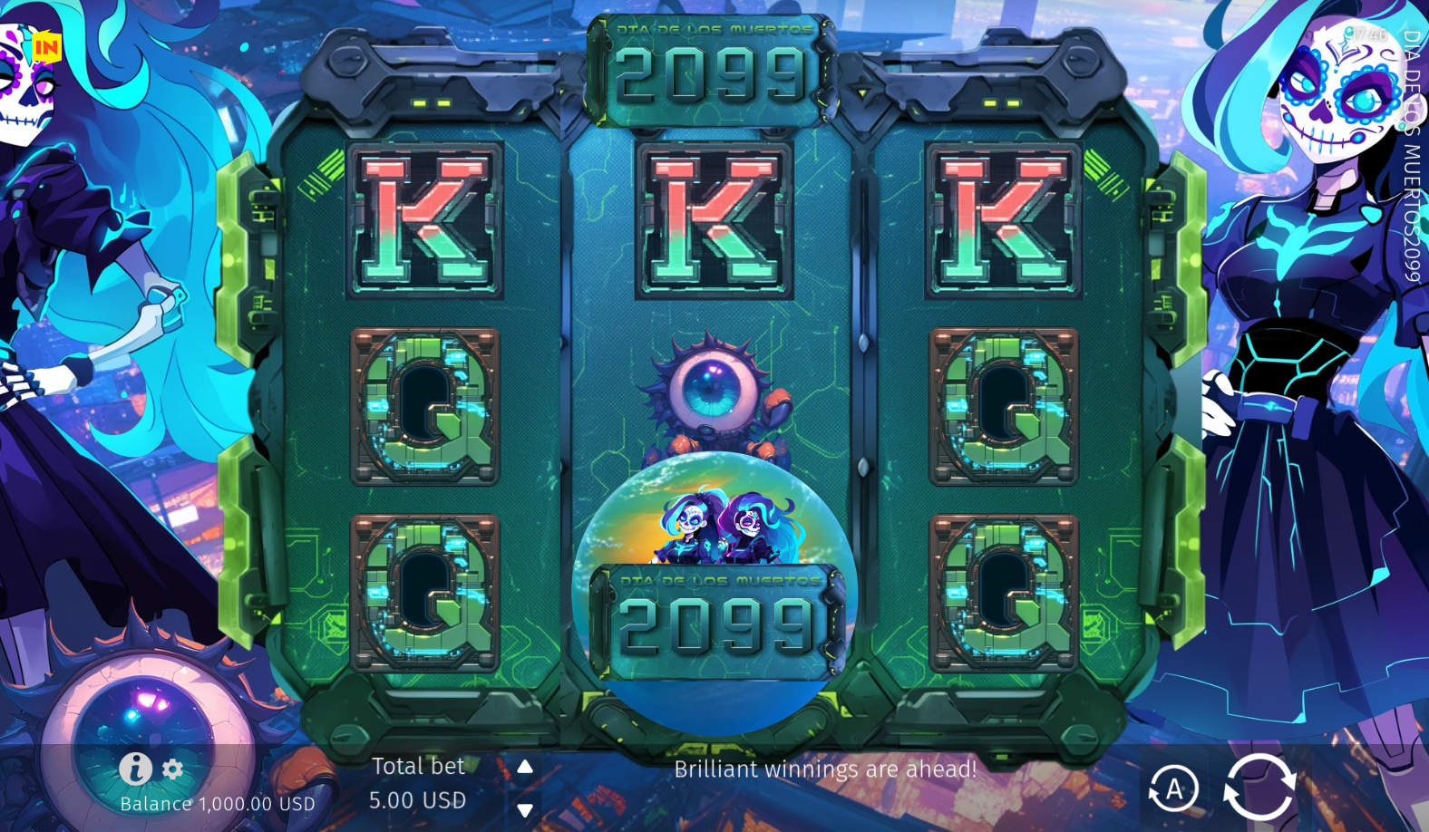 Step into a futuristic celebration with Día de los Muertos 2099, where tradition meets neon-lit technology. In this cyberpunk world, glowing symbols, mysterious eyes, and digital spirits dance across the reels as the Day of the Dead lives on in the future. Align the vibrant icons and awaken powerful rewards in a universe where ancient celebration and futuristic adventure collide.